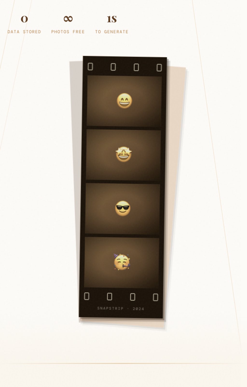 SnapStrip is almost here — a simple, private, and magical photo booth right in your browser.